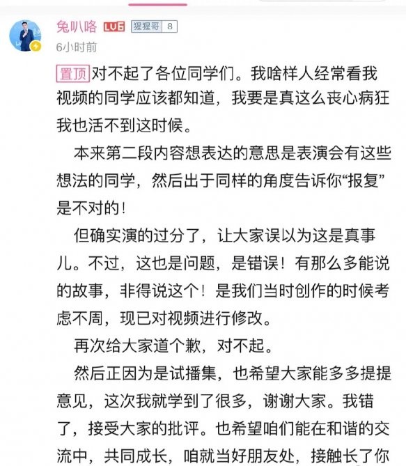 中国boy塌房是UP主中国boy和兔叭哥的新视频里有人问:“女同学拒绝了追求应该怎么报复回去?”兔叭哥说:“去旁敲侧击的造女生的谣”,因为饰演的惟妙惟肖引起很多网友不适,随后他们道歉说是演的过分了,创作的时候考虑不周。目前这集视频已经删除了。