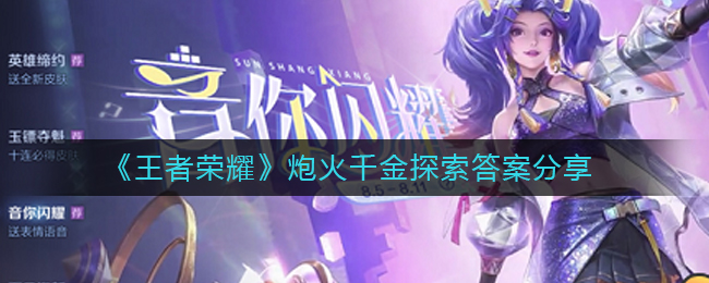 王者荣耀游戏中炮火千金探索分为4个阶段,每个阶段的答题内容都不相同,玩家们回答正确之后可以获取奖励,那么我就给大家介绍一下王者荣耀炮火千金探索答案分享,有需要的小伙伴不要错过了。王者荣耀炮火千金探索答案分享 " > 王者荣耀炮火千金探索答案分享探索第1阶段: 1、山+山合成出2、门+马合成闯3、一+木合成未4、木+目+心合成想探索第2阶段: 1、走+耳+又合