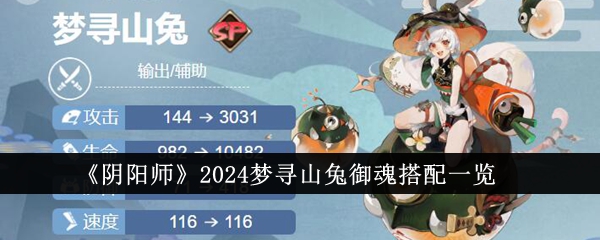 阴阳师2024梦寻山兔御魂怎么搭配?阴阳师的梦寻山兔是一个好用的控制性式神,它会放出很多的炸弹召唤物,当他们爆炸的时候会给对手眩晕,还能够提升友方的行动条,阴阳师梦寻山兔御魂怎么搭配?这个攻略能够告诉玩家们,该怎么搭配好她的最佳的御魂。阴阳师2024梦寻山兔御魂搭配一览 " >阴阳师2024梦寻山兔御魂搭配一览方案一:魅妖×4,效果命中×2御魂位置:2号位: