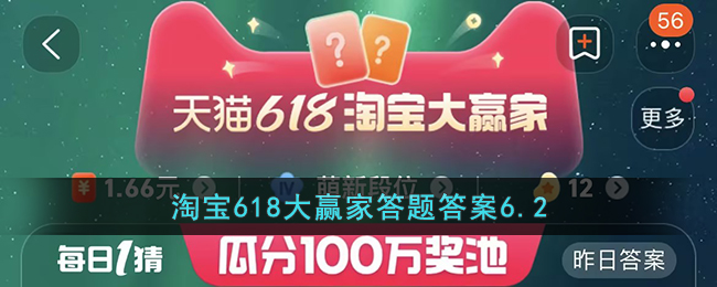 2023天猫618推出了淘宝大赢家每日一猜玩家,用户每天都可以参与活动进行答题,回答正确后就可以获得红包奖励,然后在下单的时候使用红包抵扣现金。淘宝618大赢家答题答案6.2题目为:“因为简单爱,杰伦带你领略”,下面我们一起来看看正确的答案。 天猫618淘宝大赢家每日一猜答案大全淘宝618大赢家答题答案6.2:题目:因为简单爱,杰伦带你领略?正确答案:轻量户