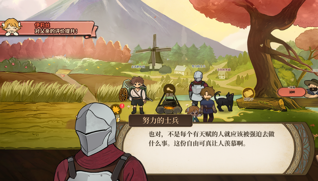 火山的女儿父亲以身作则事件要选尊重、关爱女儿的选项,每个选项增加的评价值不同,不同的开局目标需要不一样的评价值,本文为大家带来女儿6岁前的全事件加分攻略。 开局选项: 更想要成为哪一种父亲? 最让女儿有安全感的爸爸(需要博学+善良) 最让女儿自豪的爸爸(需要厉害+善良) 最宠爱体贴女儿的爸爸(需要温柔+善良) 父亲以身作则事件: 初始属性:面对女儿守在