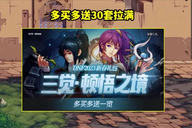 dnf2023春节礼包有春节三觉顿悟之境时装自选礼盒,武器装扮外观礼盒,1个春节光环礼盒,春节宠物,宠物装备自选礼盒,1个春节称号自选礼盒,1个春节宝珠自选礼盒,1个春节宠物宝珠自选礼盒,1张2023耕耘礼包优惠券和2张三觉之证奖励。