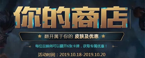 英雄联盟你的商店在哪?有很多玩家对这个问题不太清楚,接下来就由我给大家介绍英雄联盟你的商店活动位置,感兴趣的小伙伴们一起来看看吧! 英雄联盟你的商店活动 活动时间:2019年10月18日-10月20日 活动地址:英雄联盟游戏官网 活动规则: 1、每位玩家可以翻开6张卡牌,获取专属的道具和折扣。6个道具均可以以显示的折扣价格购买 2、如果翻出的皮
