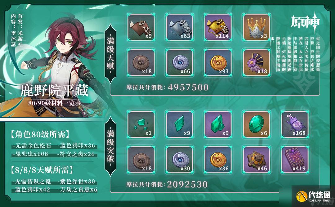 原神鹿野院平藏是2.8版本推出的4星风系角色,定位是近战输出,也具备一定的辅助能力,那么鹿野院平藏武器圣遗物要搭配,选择什么队友呢?下面就为小伙伴们带来原神鹿野院平藏全方位培养攻略吧。原神鹿野院平藏全方位培养攻略一、角色定位1.鹿野院平藏作为一个近战风系法师,辅助能力比较优秀。2.不过鹿野院平藏的输出能力也是非常优秀的,技能叠满有近1000%的倍率。