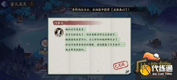 阴阳师以下谁是待宵姑获鸟的徒弟?萤火溪流活动中玩家们需要回答对问题,今日的题目是以下谁是待宵姑获鸟的徒弟,还有很多玩家回答错误,下面爪我为各位整理出阴阳师以下谁是待宵姑获鸟的徒弟答案介绍,希望可以帮助到你。阴阳师以下谁是待宵姑获鸟的徒弟答案介绍 1、以下谁是待宵姑获鸟的徒弟? 2、答案:真宵。 &emsp