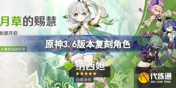 原神即将更新3.6版本,而在3.6版本也是会推出几个UP池,肯定有很多小伙伴想知道原神3.6复刻哪些角色,现在我带来了 原神3.6版本复刻角色的相关信息。原神3.6版本复刻角色 3.6版本复刻角色如下 上半复刻纳西妲、妮露 下半复刻甘雨 3.6版本复刻时间 上半4月12日到5月