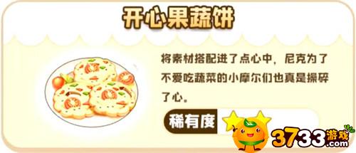摩尔庄园手游中会有很多的料理可供玩家制作,制作料理需要使用食材以及配方,不同的料理所需的配方是不同的,玩家在游戏里可以通过售卖料理来得到大量的收益,想了解开心果蔬饼制作方法的玩家可以和我一起看看吧。 摩尔庄园手游开心果蔬饼怎么做 开心果蔬饼配方:开心果+胡萝卜+马铃薯 1、开心果蔬饼料理的售价是1008摩尔豆,制作价值非常高。 2、开