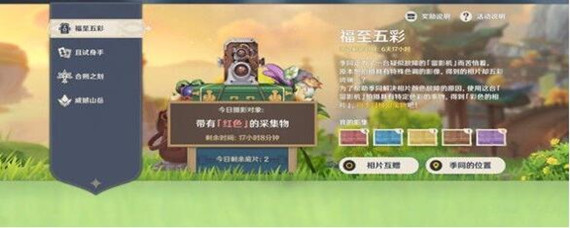 原神福至五彩红色采集物有哪些?游戏中有福至五彩的活动,需要玩家收集各种不同颜色的采集物,有的玩家还不清楚福至五彩红色采集物有哪些,下面就带来原神福至五彩红色采集物分享。 红色采集物有:烈焰花、苹果、落落梅、胡萝卜、金鱼草、辣椒、嘟嘟莲、风车菊、霓裳花。 热门标签: 原神攻略 以上就是原神福至五彩红色采集物有哪些的内容了,文章的