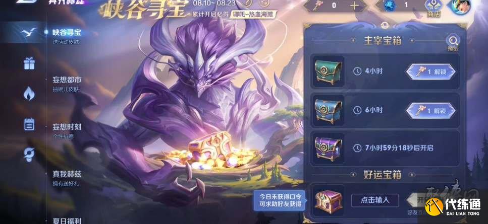 王者荣耀在昨天已经更新了全新的活动了,这次的活动是峡谷寻宝,本次活动中我们是可以获取包括皮肤在内的诸多奖励,但是也是需要大家知道寻宝口令才可以获取活动的奖励,下面让我来给大家带来,也就是2023年8月11日的峡谷寻宝口令吧。王者荣耀8.11峡谷寻宝口令大全1、8月11日峡谷寻宝口令:4GMN7S8、ARO45R、40B65H5、G5KVAU8、AAJ7JGL