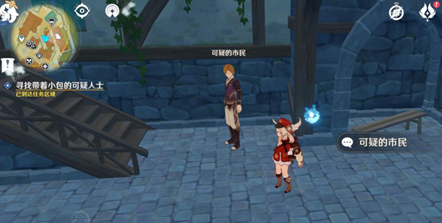 原神寻找带着小包的可疑人士在哪里?原神游戏中有一个任务要寻找带着小包的可疑人士触发后续任务,但是很多玩家不知道这个可疑人士在哪,据我所知这个人是需要小技巧才能找到的, 原神寻找带着小包的可疑人士任务攻略 任务简介: 主要就是打开元素视野,沿着元素视野的脚印往前走,找到可疑的人。 寻找带着小包的可疑人士是风花节逸闻任务节日里的