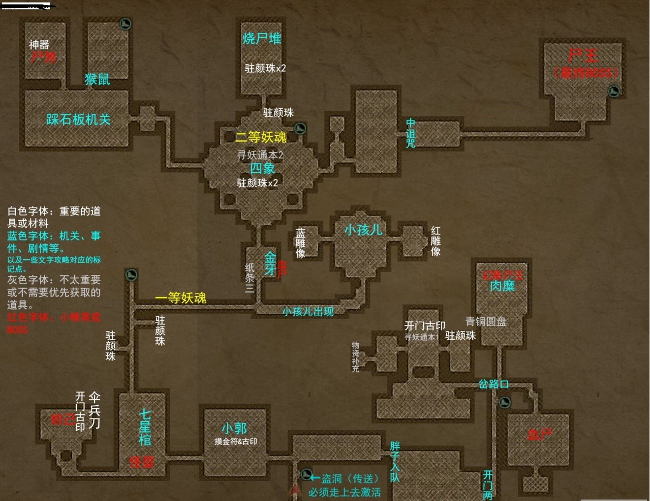 长生劫是一款比较考验解谜的游戏,游戏中有很多地图可供大家玩家,当然每个地图也会有不同的谜题等待大家去完成,下面是全地图流程攻略技巧,有需要的小伙伴可以参考参考。 长生劫全地图攻略 如果中途休息,一定要买到路线图去挂机探索,商人处优先买火油,盐,朱砂。基础材料会越来越富余。 胖子入队:除了boss以外还是推荐继续用吕峰的重击打怪,不