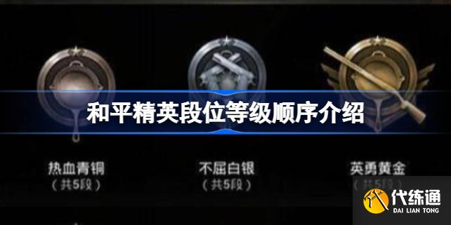 和平精英段位等级顺序分别为热血青铜、不屈白银、英勇黄金、坚忍白金、不朽星钻、荣耀皇冠、超级王牌和无敌战神,下面我为小伙伴们带来和平精英段位等级顺序介绍。和平精英段位等级顺序是什么 1、 热血青铜 热血青铜段位共有5个段位 段位对应分数 ①热血青铜Ⅴ