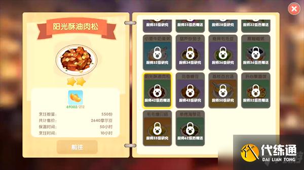 摩尔庄园手游阳光酥油肉松料理收益如何呢?阳光酥油肉松料理要注意什么呢?下面我为小伙伴们带来摩尔庄园手游阳光酥油肉松料理收益攻略,一起看看吧.1.菜谱配方:毛毛花、玉米、茄子摩尔豆*2122.制作方法:火候:大火、中火烹饪时间:10小时保温时间:50小时解锁条件:厨师等级42级后赠送阳光酥油肉松菜谱是SMC等级奖励,在解锁后只需要花费摩尔豆来烹饪,如果你的研究