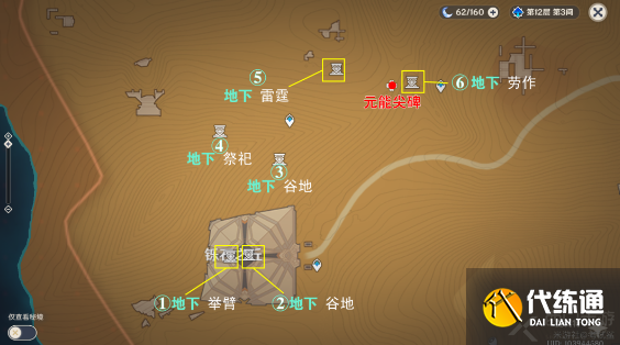 在原神游戏中沙漠地区目前有10个元能尖碑,其中8号元能尖碑的位置是在渡厄厅的上方位置,对应的圣章石则都是在地下,有玩家还不知道具体位置,接下来我为小伙伴们带来了详细介绍,希望可以帮助到大家。8号(地下)方尖碑 (红色标记)及所需6个圣章石地图位置:>>沙漠地区10个元能方尖碑&60圣章石位置汇总