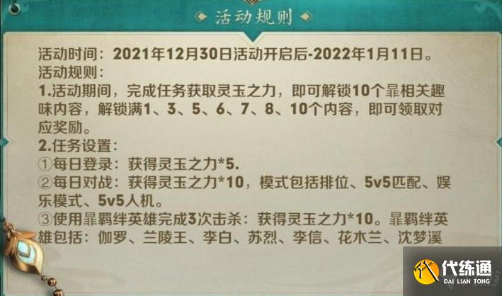 王者荣耀暃的羁绊英雄是谁?王者最近推出了全新的活动内容,在活动期间玩家收集灵玉之力就可以解锁各种有趣的内容,下面一起来看一下九游我带来的王者荣耀暃的羁绊英雄分享。王者荣耀暃的羁绊英雄分享暃的羁绊英雄是伽罗,兰陵王,花木兰,李白,苏烈,沈梦溪,李信,以上7位英雄。活动规则:1、活动期间,完成任务获取灵玉之力,即可解锁10个暃相关趣味内容,解