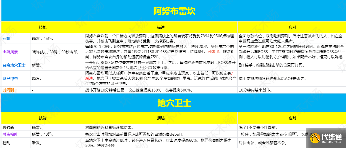 在魔兽世界WLK怀旧服中,纳克萨玛斯的阿努布雷坎怎么打,阿努布雷坎打法攻略。坏木杨BOSS技能手册总览阿努布雷坎基本是作为纳克萨玛斯全场的看门首领而存在,战斗结构简单易学,非常适合熟悉80级的Raid强度。团队配置普通难度:2-3名坦克,2-3名治疗,其余为输出人员。英雄难度:2-3名坦克,6-8名治疗,其余为输出人员。装备毫无疑问,从普通副本收集到的全套蓝