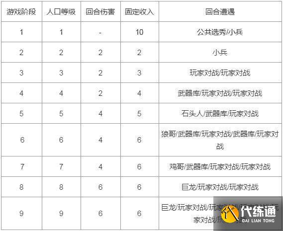 基础设定狂暴模式作为一个一把20分钟以内的对局,具体的对局流程以这个表格作为参考,有两次武器库必定会刷2个黑暗散件2个普通散件,剩下的武器库都是刷三个普通散件,其他野怪的掉落和普通模式相同。D牌概率和牌的数量也和普通模式相同,但是每个回合之间的休息时间只有30秒。在狂暴模式里每一次战败你能获得2金币,但战胜没有额外金币,每回合只有固定金币,没