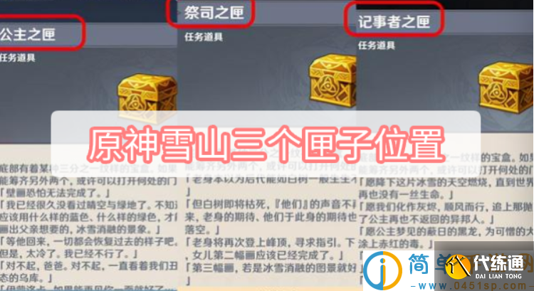 原神雪山三个匣子在哪?雪山里面通过完成任务来得到一把非常好看的双手剑[雪葬的星银]。需要我们去找到三个宝匣,在这里我就为小伙伴们带来原神雪山三个匣子位置详解,对此问题不清楚的小伙伴们千万不要错过了,赶快加入看看,我将为各位的游戏体验保驾护航。原神雪山三个匣子在哪里:公主之匣1、来到覆雪之路传送点,一路顺着箭头走。2、来到一个小岛上,我们可