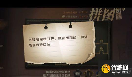 哈利波特当砖墙缓缓打开,眼前出现的一切让哈利目瞪口呆,这个是10.7的线索,也是第三期第二天拼图的线索之一,怎么找到对应的位置呢,下面就来介绍下哈利波特当砖墙缓缓打开线索在哪。哈利波特当砖墙缓缓打开线索位置分享10.7拼图寻宝视频攻略:点击由此进入查看位置一:草药课教室找到卡姐(跳舞)位置二:对角巷外街入口(点击对角巷外街,转身向后朝商店相反方向