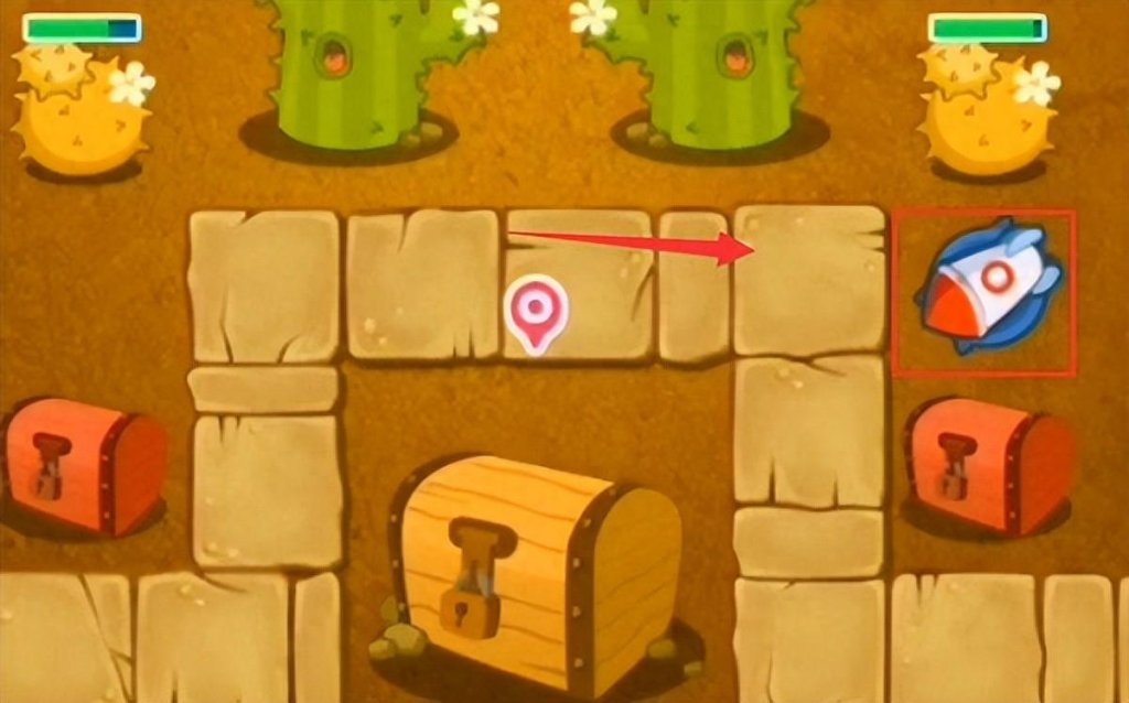 沙漠挑战第一关1、现在中间偏右位置放一个火箭,把第一波怪清掉后瞄准下面的宝箱。2、打宝箱能顺便把火箭下面的一格清出来,在这里造一个星星,之后随便造点炮台就能轻松通关了。第二关1、这关更简单,前期靠门口白给的几个塔就能守,我们只要在中间造一个毒针,清一下周围的障碍物。2、清出空间,有钱了之后再补几个塔即可通关。第三关1、这一关先升中间的风扇