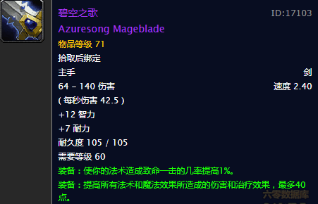 属性逆天却不敢拿!碧空之歌,魔兽世界怀旧服MT必让的单手剑众所周知,在魔兽世界怀旧服中,8号BOSS焚化者古雷格曼会掉落一把很不错的法系单手剑,这便是:碧空之歌。