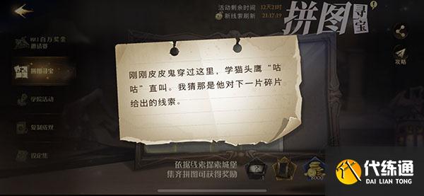 哈利波特魔法觉醒刚刚皮皮鬼穿过这里,学猫头鹰“咕咕”直叫。我猜那是他对下一片碎片给出的线索是哈利波特魔法觉醒的拼图寻宝的线索之一,玩家们在游戏里面可以寻找线索进行拼图,一起来看看的线索吧。线索:刚刚皮皮鬼穿过这里,学猫头鹰“咕咕”直叫。我猜那是他对下一片碎片给出的线索;1、首先玩家们打开右下角的游戏地图,然后点击猫头鹰邮局;2、进入邮