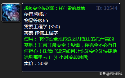 开TBC之后,工程又有新福利,两系有新传送器可学,地精工程到52区,侏儒工程到刀锋山。52区的传送器是中立城市,很多人都知道,而刀锋山的传送器就不一定,特别对部落来说,因为学习的NPC竟然在联盟营地!