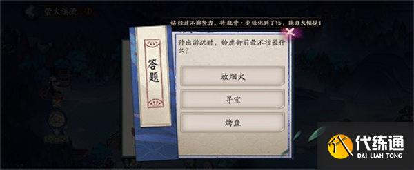 阴阳师外出游玩时铃鹿御前最不擅长什么答案选什么?阴阳师外出游玩时铃鹿御前最不擅长什么答案怎么选?阴阳师外出游玩时铃鹿御前最不擅长什么正确答案是哪个?外出游玩时铃鹿御前最不擅长什么,这是阴阳师7月14日萤火溪流答题活动中的问题,很多玩家想知道问题的答案是什么,这里给大家带来阴阳师外出游玩时铃鹿御前最不擅长什么答案解析。阴阳师外出游玩时铃鹿御