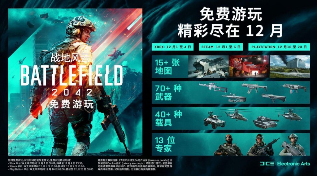 战地风云 2042是一款由DICE开发、Electronic Arts发行的一款第一人称射击游戏,于2021年11月19日在Origin、Steam、EPIC、Xbox Series X S、Xbox One、PS5、PS4平台发售。最近游戏官方开启了游戏限免,从12月1号开始到12月5号都可以免费游玩,但是很多玩家都出现了进不去的情况,我这边总结了一些解决
