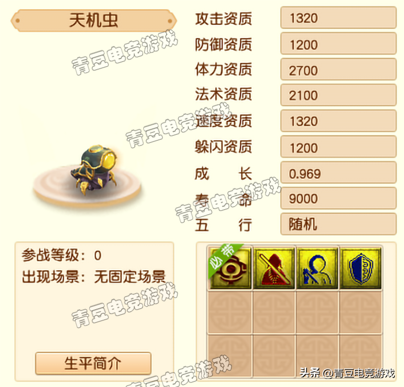 由于部分召唤兽存在技能重叠,我们只挑选出一个代表召唤展示。1、天机虫洞察。物理攻击时,随机侦查一名对方单位气血。(仅对怪物战斗有效)仅天机虫可拥有此技能——嘀,敌人的弱点已探查清楚。2、金钱龟招财进宝物理攻击时,较小几率出现一个元宝,额外造成大量伤害。仅元宝龟可拥有此技能——千金散尽还复来。3、鲛人移花接木避免暗器伤害;恢复所避免暗器