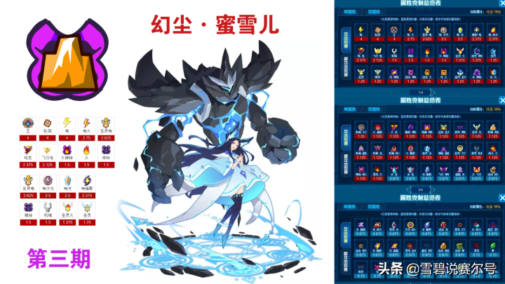 本期还是围绕当前萌新玩家入门巅峰,推荐五个强大且低门槛精灵详细解析。只要你好好打,半个月甚至一周都能打出来,比起莫莱依可能要入手要更加快一些:第三期幻尘·蜜雪儿性格:保守学习力:特攻255 体力255 (标准型)特攻255 速度255(速度型)刻印配置:刷法方向决定你这个精灵是走速度流,还是肉盾消耗流。特攻刻印基本不变,特攻数值刻印的要求不是很高,体力