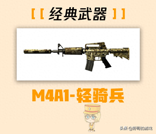 M4属于现在最热门的武器,并且也是皮肤最多的,高达70多款,再进化为英雄级武器后,有雷神、死神、玫瑰精灵、黑骑士、黑龙等,算是一个庞大的家族了。不过今天小编给大家带来的,是最经典的4款M4,各个藏有回忆,那么你收藏齐了吗?一、M4A1-轻骑兵
