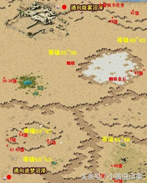 树心17级BOSS也是在湖旁边冰妖剑士23级的是在那两个屋子的中间(当你看到有千里碑时,地图打开就能见到了。)提风(说不出来)树心(隐雾沼泽)分布图片:呖风戈壁37级的魔人在出城后就往左跑。