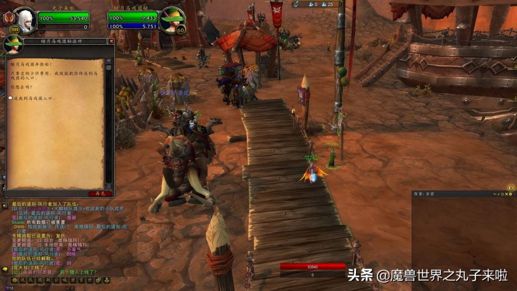 首先,暗月马戏团是从奥格瑞玛飞行点附近,与NPC对话。就是这个小姐姐。然后就来到了雷霆崖附近,点传送门进入暗月马戏团。进来以后顺着小路,就能来到暗月马戏团的会场。着重说一个非常帅气,非常帅气的玩具——炽燃之翼。穿上的效果呢,就是多了一双大翅膀。可以持续15分钟。给大家看看丸子用了以后的模样。有没有很帅气的啊。获取方式也很简单,在暗月马戏团