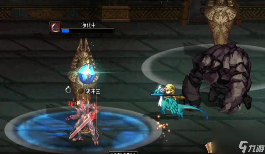 活动玩法这个活动其实很简单,在等猫妖说一堆废话后,在地图中间将会出现一个宝石,我们需要使用这个宝石去净化祭坛,将三个祭坛全部净化后方可通关。我们走到宝珠上面捡起宝珠,一旦捡起来宝珠将会出现守护者,守护这会追踪宝珠,所以我们捡起来宝珠后就会被盯上守护者盯上宝珠后会变身 "车轮滚滚 "去追击玩家,一旦被撞到,玩家将会倒地,同时宝珠也会掉落地