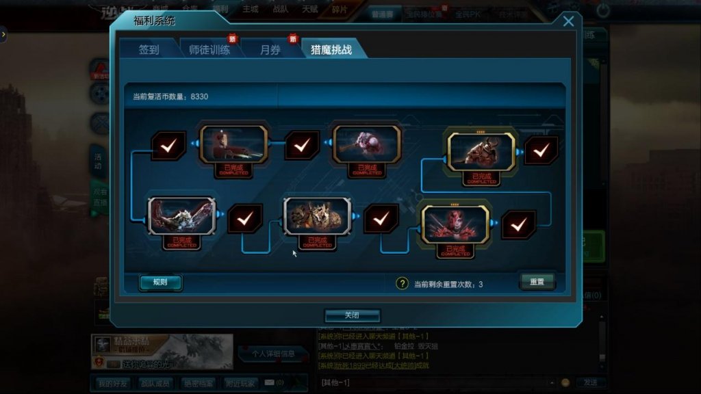 逆战手游猎魔乐园介绍(逆战游戏猎魔通关流程)目前,大部分玩家已经忽视了这个模式。在猎魔环节中,玩家将直接与预定的BOSS进行对决,如果成功挑战,他们将获得奖励并解锁下一个BOSS。若挑战不成功,进度将会停止,玩家只能消耗当天的重置次数,重新开始挑战。