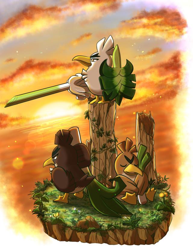 伽勒尔地区有部分亚种获得了原种没有的进化型。1.伽勒尔大葱鸭——葱游兵葱游兵是人气极高的宝可梦,其眼神实在过于喜感,并且拿着的剑盾被戏称为真正的剑盾神,同人一大堆,以后有时间专门发一期图(有娘化葱游兵哦)。葱游兵给女主治疗感冒的稀有相片。可能是被吃怕了,伽勒尔地区大葱鸭进化后变强了。葱游兵属性格斗,种族507分布其实不是很好,物攻135还算不