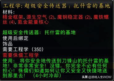 希望能给那些不晓得怎么做工程学分支提供帮助。燃烧的远征工程学技能到了一定程度就需要去选择地精、或者侏儒工程学、有一些特定的专业制造品需要选择了其中之一并且做了一系列任务才可以学习制作,例如;传送器两件工程专业饰品分别需要地精工程、以及侏儒工程、现在给诸位提供一下工程学分支任务领取地点~地精工程学偏向于伤害、爆破、侏儒工程学偏向于控制