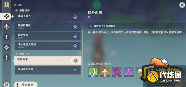 原神寻找另外半截船任务怎么做?原神游戏中有有个世界任务是自外而来,需要玩家寻找另外半截船,那么原神寻找另外半截船在哪里?我就为小伙伴们带来原神寻找另外半截船任务攻略,希望可以帮到大家。原神寻找另外半截船任务攻略 自外而来是原神1.6版本中新增的一项世界任务,玩家们需要根据任务指引寻找另外半截船。 在无名