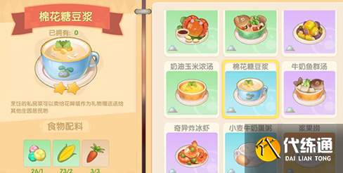 摩尔庄园游戏中有非常多的食物可以来进行制作体验,我其中棉花糖豆浆相信还有许多小伙伴不知道怎么做吧?方法很简单,接下来我给大家奉上摩尔庄园棉花糖豆浆食谱制作方案,快来一起看看吧!摩尔庄园手游棉花糖豆浆怎么做:1.食谱:棉花糖*1+玉米*2+胡萝卜*32.火候:中火3.烹饪时间:5分钟4.食材获取:棉花糖:我们需要在达到28级后从商店购买种子,然后将其种植到成熟