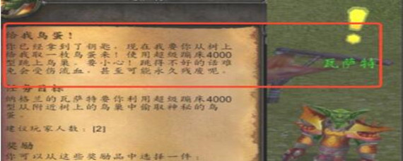 魔兽世界给我鸟蛋怎么做?游戏中有着许多的任务,有的任务一些玩家想完成但是不清楚怎么做,下面就带来魔兽世界给我鸟蛋任务完成攻略。 接完任务,边上有棵树,树上有个鸟巢,飞上去,捡个蛋,然后飞下来,等一会就看见一只大鸟飞过来,杀了之后,捡了尸体就能交任务了。 热门标签: 魔兽世界攻略 上文就是魔兽世界给我鸟蛋怎么做?的内容了,文章的版