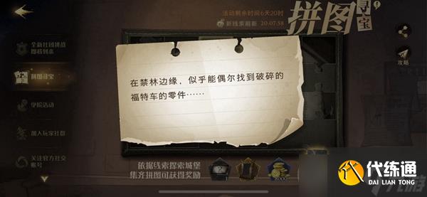 在禁林边缘,似乎偶尔能找到破碎的福特车的零件是的随后一个拼图线索,文中提到禁林边缘,大家应该可以猜到是哪个位置,那么具体的位置是哪里呢,赶紧和我一起来1看看吧。哈利波特魔法觉醒攻略大全-拼图寻宝攻略大全在禁林边缘似乎能偶尔找到破碎的拼图寻宝攻略线索:在禁林边缘,似乎偶尔能找到破碎的福特车的零件。位置:1、这次的任务地点是打柳人树,玩家