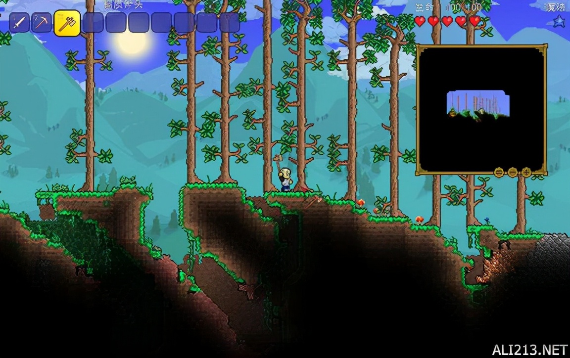 首先开荒,必不可少,这里我要向大家简单介绍一下开荒攻略。进入游戏到达了一个新的世界....陌生,无助,只有那个可(dou)爱(bi)的向导到时候还要住我的房子...虽然这不是mc但是要想要致富也是必须砍树的....不是致富,是生存!想生存就得砍树,10个木材合成一个工作台。不同与mc,泰拉瑞亚的工作台之能做些基本的合成。像平台,桌子,木剑(我从来没用过!)以及墙壁,椅