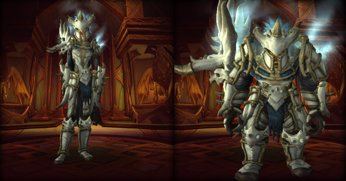 魔兽世界版本不断的更新中,幻化成为了玩家们日常中不可或缺的一项玩法,不管是老版本的团本或者是地下城,都因为幻化和坐骑变的不会显得那么的落寞。这些是新团本达萨罗之战中史诗难度下的的新套装,和以往不同的是,板甲是同样的幻化,没有职业上的区别,板甲只有同样的这一套幻化,没有职业区别的幻化,在胖瘦对比下,显然体型大的种族更能穿出这套装备的