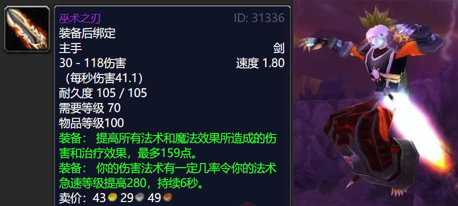 在魔兽世界TBC资料片中,暴雪延续了60年代的设定,同样加入了很多世界掉落的装备绑定紫装。这些紫装各具特色,虽然没有60年代的“剑师护手”这种过于IMBA的存在,但是也有不少在初期甚至能用很久的BIS。