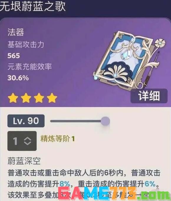 原神无垠蔚蓝之歌90级面板属性。原神这款游戏是一款开放世界冒险游戏,这款游戏是一款以二次元画风为主的游戏,游戏中还有着角色扮演等一些列的游玩方式。这款游戏在当下十分火热,相信小伙伴们对这款游戏都十分的熟悉。