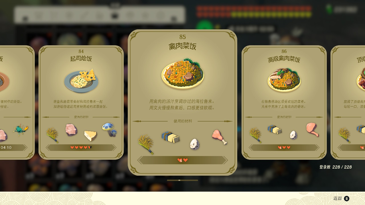 塞尔达传说王国之泪禽肉菜饭效果分享。塞尔达传说王国之泪这款游戏是一款非常好玩的开放世界游戏。这款游戏有任天堂发售,玩家可以在switch中进行购买游玩。在游戏中,玩家能够体验到许多的游戏内容,有开放世界的探索冒险与收集,各种好玩有趣的道具以及各种怪物,boss等等,每一种都能够给玩家不一样的体验。
