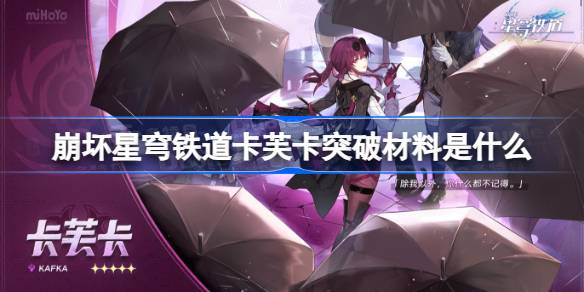 崩坏星穹铁道卡芙卡突破材料是什么。崩坏星穹铁道这款游戏是一款由上海米哈游研发而成的回合制角色扮演游戏,这款游戏有着好玩有趣的游戏玩法,这款游戏不是非常的肝,玩家可以在最短时间内快速的获得所有的活动奖励,其游戏任务也没有特别长的,在剧情方面还做的十分引人入胜。
